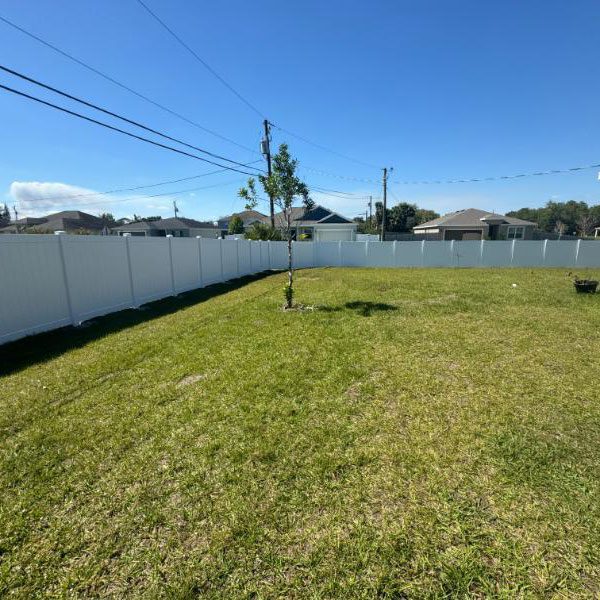 In the Gardens of Woodberry community in Palm Beach Gardens, FL, we removed the homeowner’s old wooden fence and installed a beautiful woodgrain tan shadowbox vinyl fence in its place. We also assisted with the HOA approval process and handled the permitting to ensure a smooth, stress-free experience.