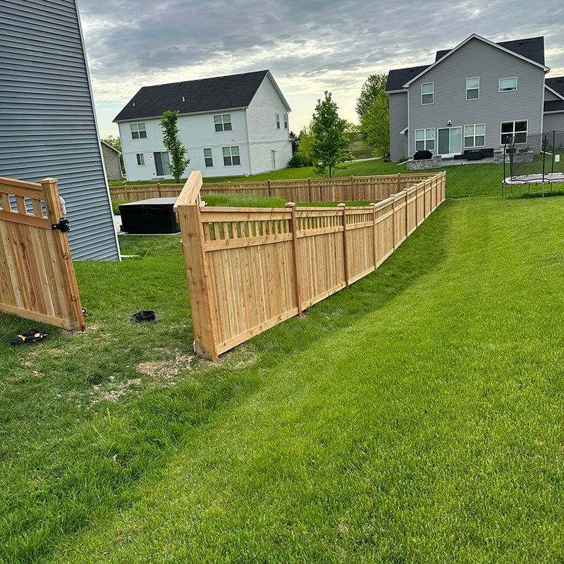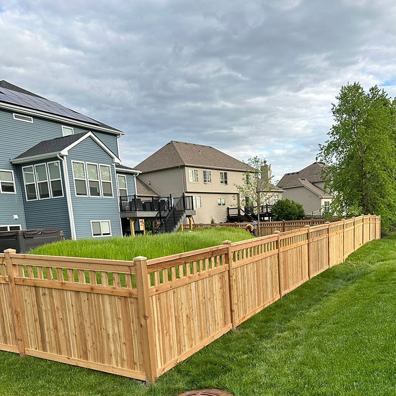 Our Plainfield customer has a beautiful home and property, which is only enhanced by this new picket-top cedar privacy fence. Installation was quick.