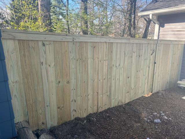 60 ft of pressure-treated wood privacy fence in Rome, GA. We are the local areas best fence company near you. Stockade 6ft tall PTP Privacy.
