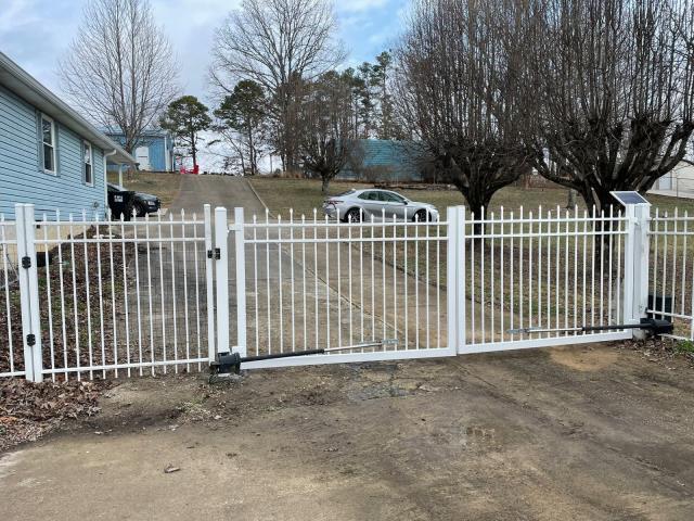 A little Saturday weekend job of installing a custom white ornamental gate with powered swing arms in Soddy-Daisy. This style is the alternating speartop. Our crew did a great job and wrapped up nicely before the rain. This job was right on Hixson Pike near Dallas Hollow Road and Lakesite.