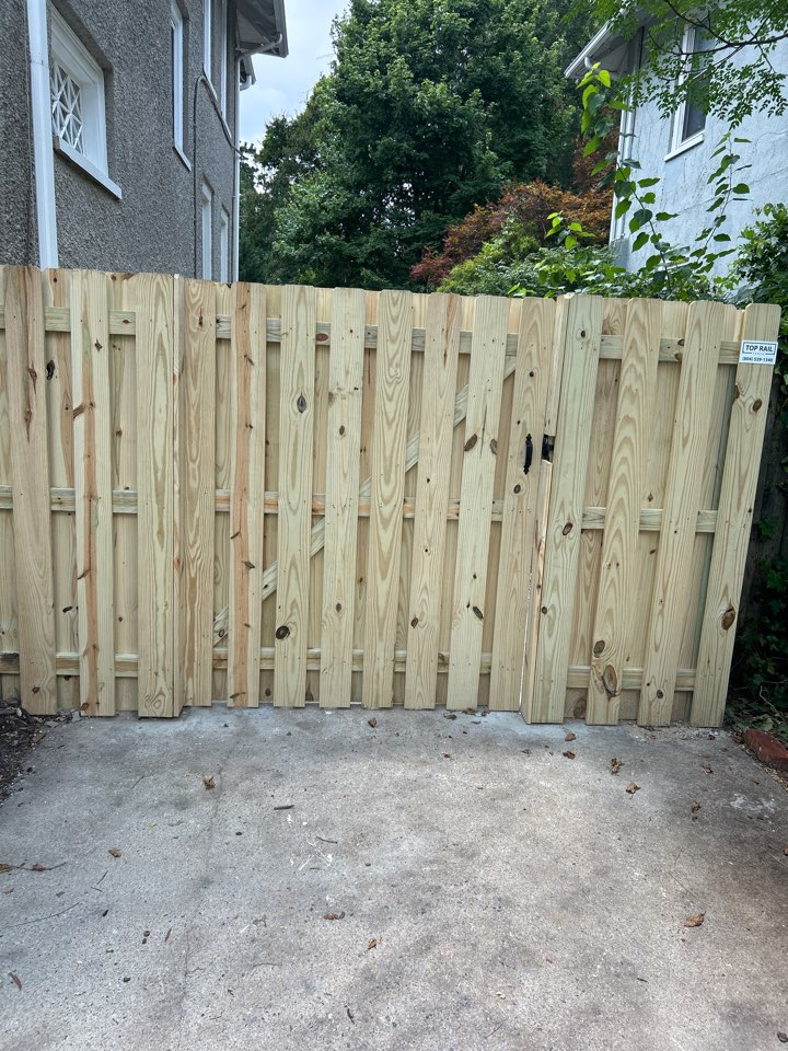 This customer’s yard had a significant slope. When Top Rail completed their new privacy fence installation, we made sure there were no visible gaps along the grade of the land. Testimonial: “ I’m really pleased with the installation of my fence from Top Rail. From initial contact to the completion of the fence, Bob and his team were top-notch! I highly recommend using Top Rail!” --Porlan C.